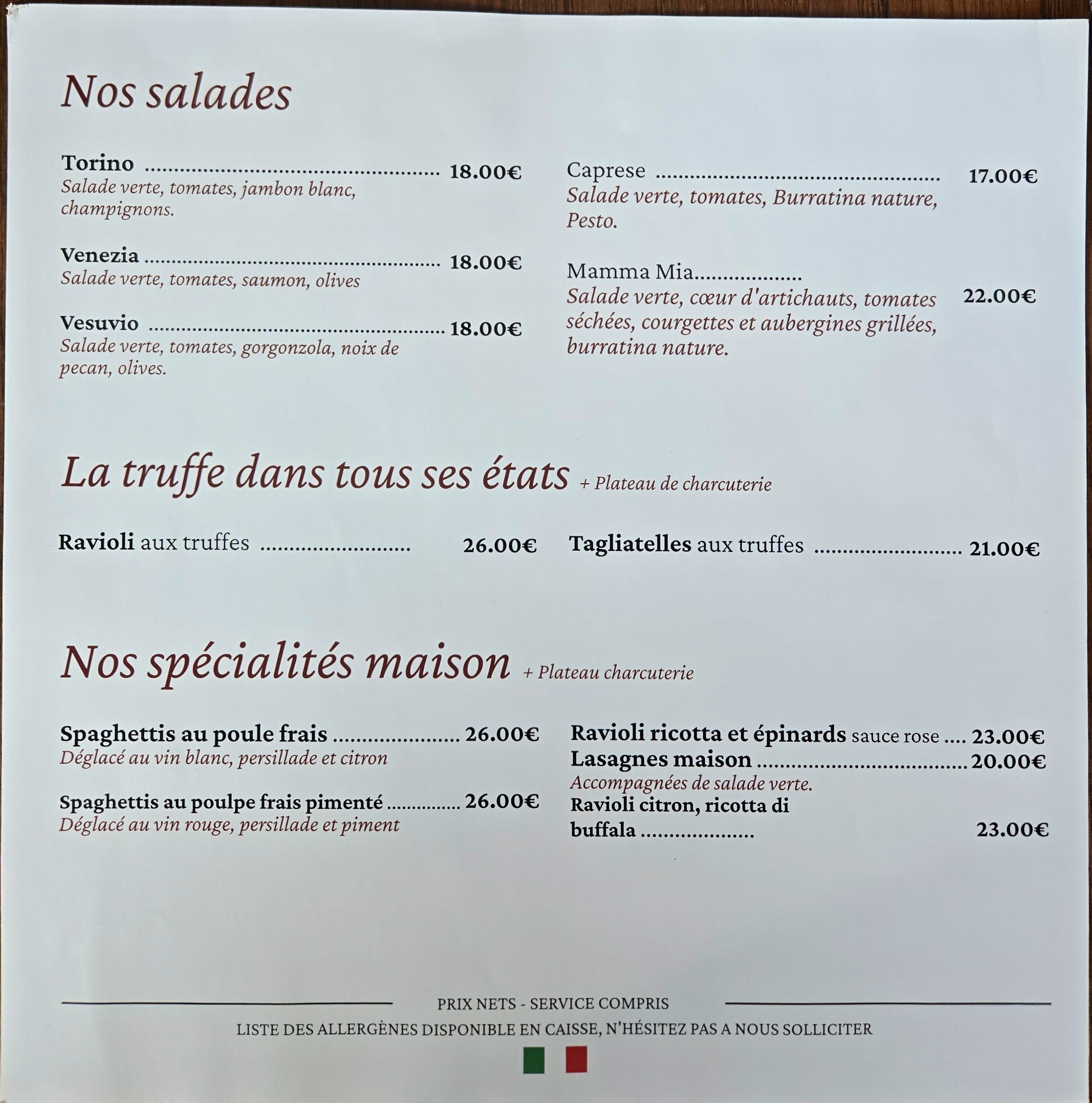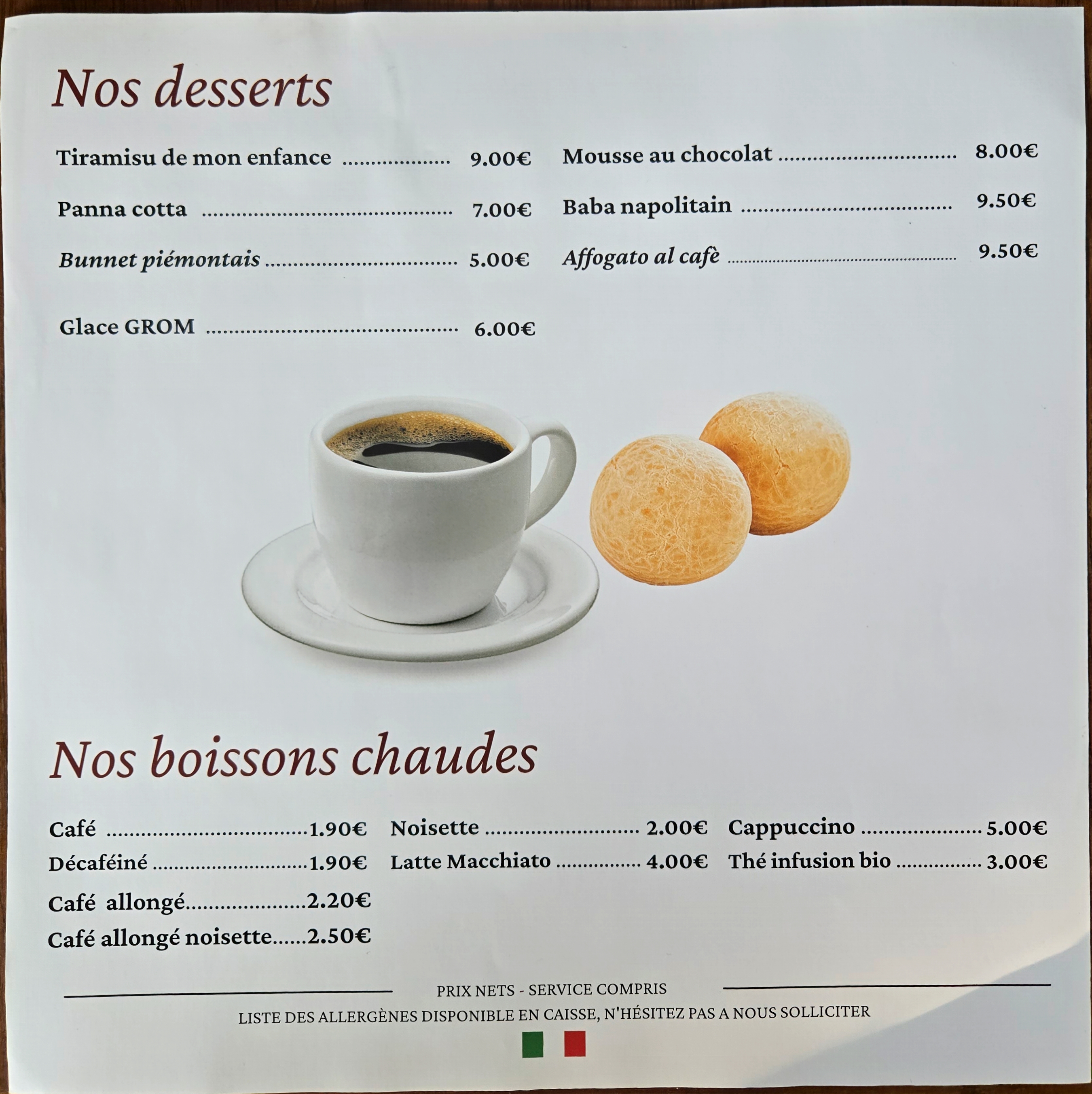 Si vous êtes gourmands, vous apprécierez nos délicieux desserts et nôtre dessert signature le tiramisu de mon enfance.